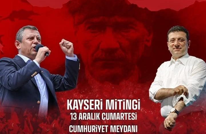 CHP Kayseri il başkanı Ümit Özer, Genel Başkanı Özgür Özel’in 13 Aralık Cumartesi günü saat 14.00’te Kayseri Cumhuriyet meydanında gerçekleştireceği mitingle ilgili şu açıklamayı yaptı.
