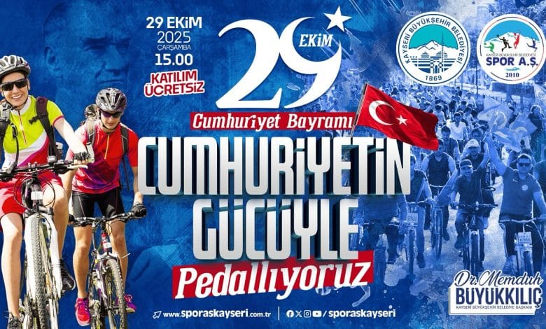 Kayseri Büyükşehir Belediyesi Spor A.Ş., 29 Ekim Cumhuriyet Bayramı kutlamaları kapsamında ‘Cumhuriyetin Gücüyle Pedallıyoruz’ sloganıyla bisiklet turu düzenliyor. 29 Ekim 2025 Çarşamba günü saat 15.00’de Recep Tayyip Erdoğan Millet Bahçesi 1 nolu otoparktan start alacak bisiklet turu, 8 kilometrelik parkurun bitiş noktası olan Kayseri Cumhuriyet Meydanı’nda sona erecek.