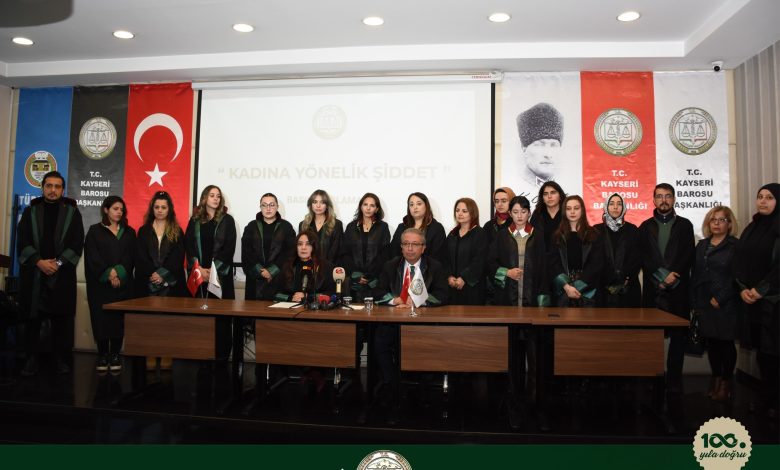Kayseri Barosu Kadın Hakları Komisyonu tarafından, son dönemlerde Kayseri’de art arda yaşanan kadın cinayetlerine tepki olarak “Kadına Yönelik Şiddet” konulu basın açıklaması gerçekleştirildi. Komisyon üyesi avukat Gülen Ay Gök, kadınların başvurularının gecikmeden alınmasını, koruma tedbirlerinin derhal ve eksiksiz uygulanmasını, kolluğun şiddet failine karşı anlık ve etkili müdahelesini, savcılık soruşturmalarının özenli ve hızla yürütülmesini, cezasızlık doğuran tüm uygulamaların son bulmasını, koruma kararlarının anbean takip edilmesini talep etti ‘Devlet kurumlarının görevlerini yerine getirmemesi kadınların hayatına mal oluyor’ dedi.