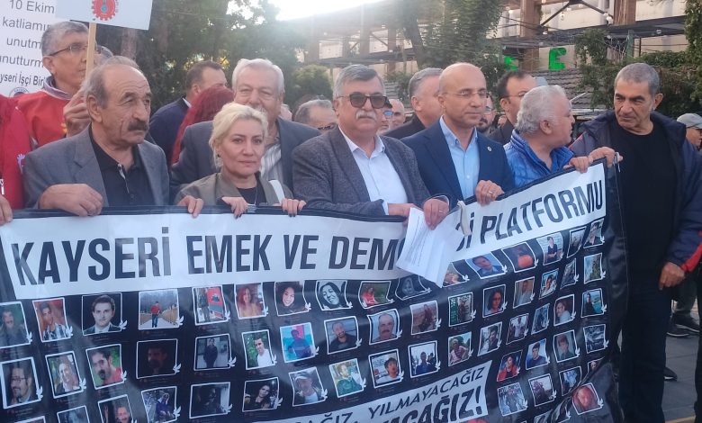 KESK dönem sözcüsü Uğur Sedat Ünsal, CHP milletvekili Aşkın Genç’inde destek verdiği, Kayseri Emek ve Demokrasi platformu adına, 10 Ekim Ankara katliamının 10. yılı nedeniyle yaptığı açıklamada, ‘Affetmiyoruz, unutmadık, unutturmayacağız, katiller hesap verecek,adalet yerini bulacak’ dedi ve şunları söyledi.