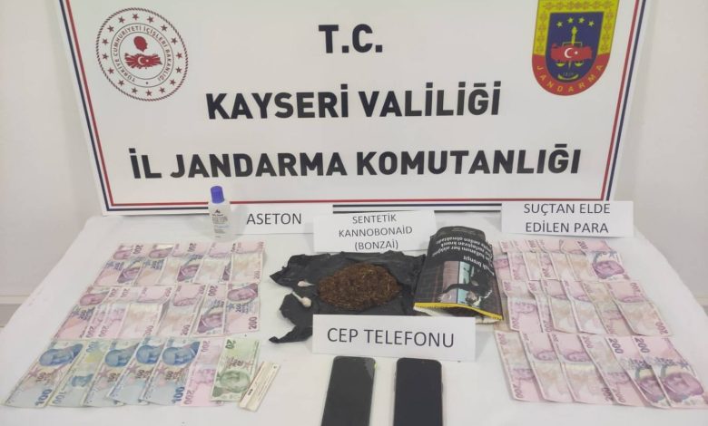 Kayseri İl J. K.lığı Narkotik Şube Müdürlüğünün yapmış olduğu çalışmalar kapsamında, Develi İlçesinde *M.K* isimli şahsın ikametinde ve aracında NSM Şb.Md.lüğü ve Develi İlçe J.K.lığınca 07.12.2025 günü icra edilen adli arama neticesinde;(2.7) Gram Saf A/M Maddesi, (47.8) Gram Sentetik Kannabinoid (Bonzai), (7.720 ) TL Suçtan Elde Edilen Nakit Para,, (2) Adet Cep Telefonu, (1) Adet 130 ml Aseton mm, (65.8) Gram Sentetik Uyuşturucu Yapımında Kullanılan Tütün, ele geçirilmiş olup, evde bulunan şüpheli şahıs gözaltına alınarak C.Savcısının talimatı ile tahkikata başlanmıştır.